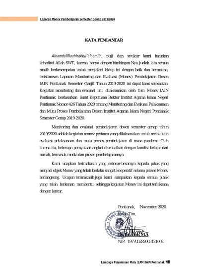 Laporan pengembangan mutu pembelajaran dan hasil monev secara berkala sebagai bahan treatment pengembangan mutu. Berikut kami lampirkan surat pengantar untuk laporan hasil kegiatan monev sem i 2016. Puji dan syukur kami panjatkan ke hadirat tuhan yang maha pengasih dan penyayang atas selesainya penyusunan modul monitoring dan evaluasi. Perkenannya maka penyusunan laporan monitoring dan . Puji syukur kita panjatkan ke hadirat allah swt, karena atas berkah dan.